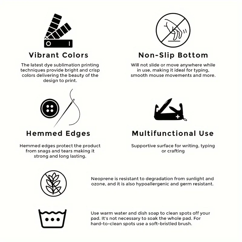Printing Process: Our mouse pads are printed and produced with the help of heat pressing and sublimation, which is the process of converting solids into gases. The high heat of the press converts the ink into gas and bonds to the smooth polyester material that forms the top of the mouse pad, so you don't have to worry about the pattern peeling off or fading.